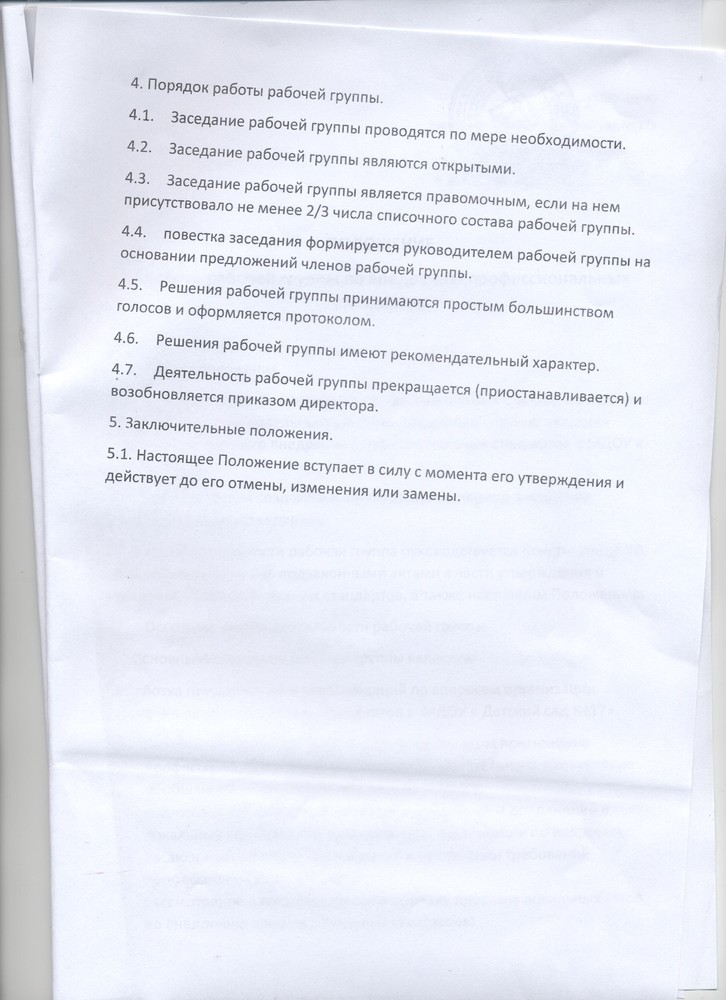4.7. Деятельность рабочей группы прекращается (приостанавливается) и возобновляется приказом директора.