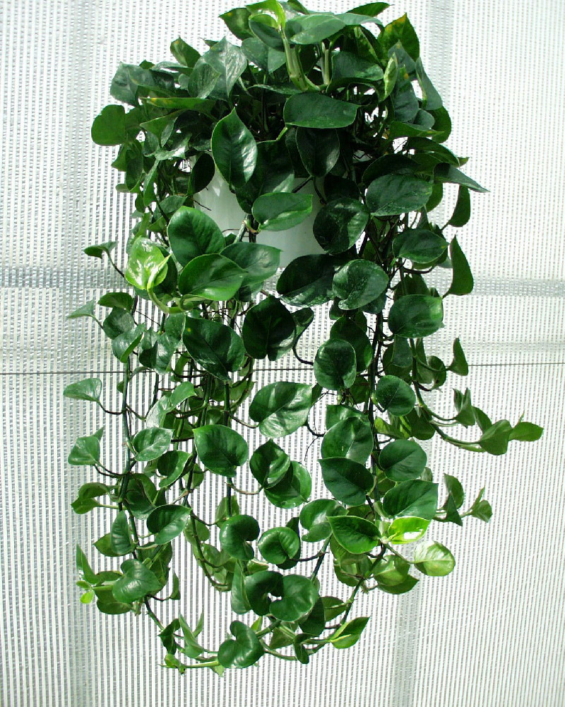 Сциндапсус - азиатское растение с кожистыми листьями. Устойчиво к перепадам температуры, нижний предел +12°C. Ему необходимо регулярное увлажнение субстрата и опрыскивание, особенно в жару. Между поливами нужен перерыв: если влаги будет слишком много, корни начнут гнить. Если сциндапсус в кашпо разместить на стене как можно выше, то года за 2 он дотянется до пола.