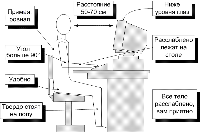 2. Также одним из важнейших аспектов быстрой печати является правильное рабочее место. Правила работы за компьютером наглядно видны на изображении ниже.