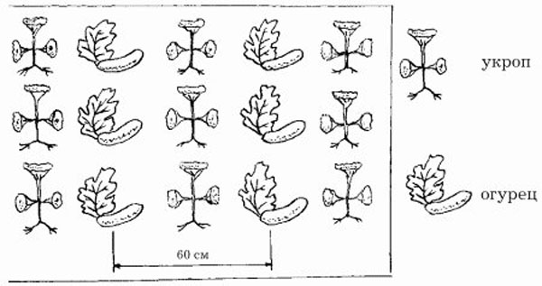 | Огурец=Cucumber | Бобы=Bean, сельдерей=celery, салат-латук=lettuce, горох=pea, редис=radish | Цветная капуста=Cauliflower, горох=potato, базилик=basil |